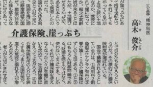 精神科医・高木俊介さんの記事が京都新聞に掲載されました Topics(最新情報) 2025.12.15 精神科医・高木俊介さんの「介護保険、崖っぷち」という記事が 12月8日付の京都新聞に掲載されました。 是非ご覧ください。 高木俊介さん京都新聞記事