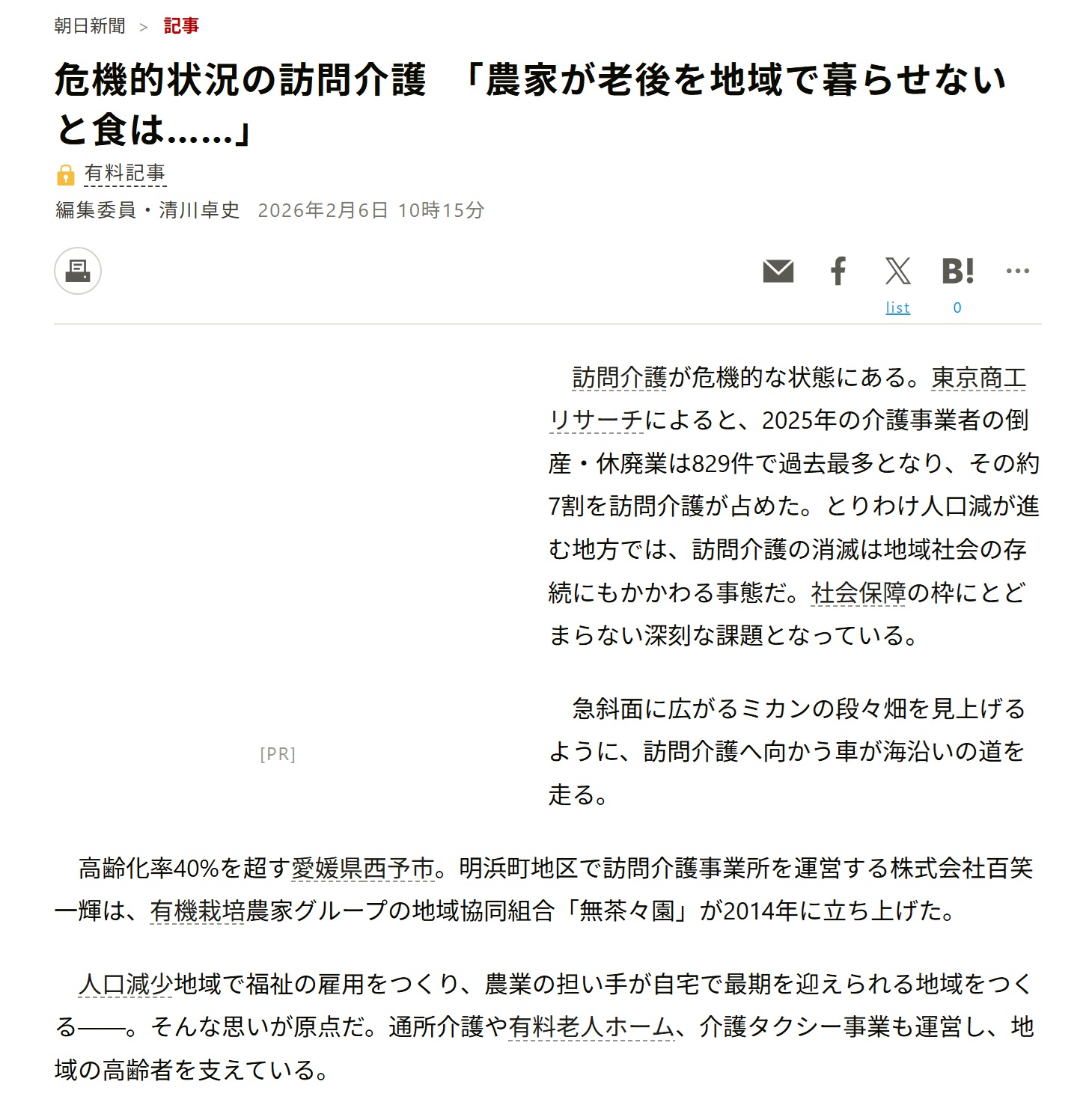 危機的状況の訪問介護 「農家が老後を地域で暮らせないと食は……」 [衆院選(衆議院選挙)2026]:朝日新聞